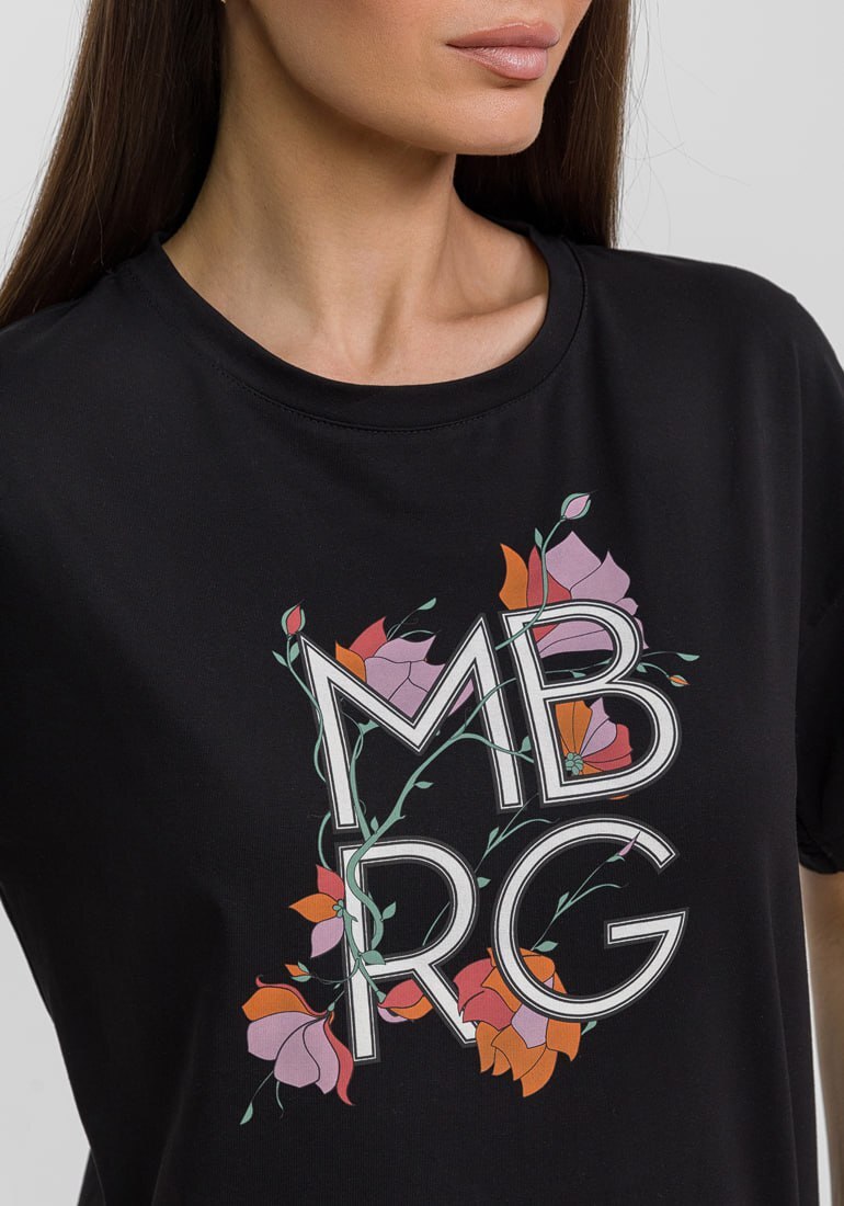 Женская Футболка Maiberg с круглым вырезом горловины универсальная вещь в гардеробе, которая легко сочетается с джинсами, брюками и юбками разных тонов и фасонов. Несмотря на расслабленную посадку, такая футболка делает образ аккуратным и лаконичным. На груди изделия имеется фирменный принт. Изготовлена модель из плотного, гладкого хлопка качества «Compact Penye».
